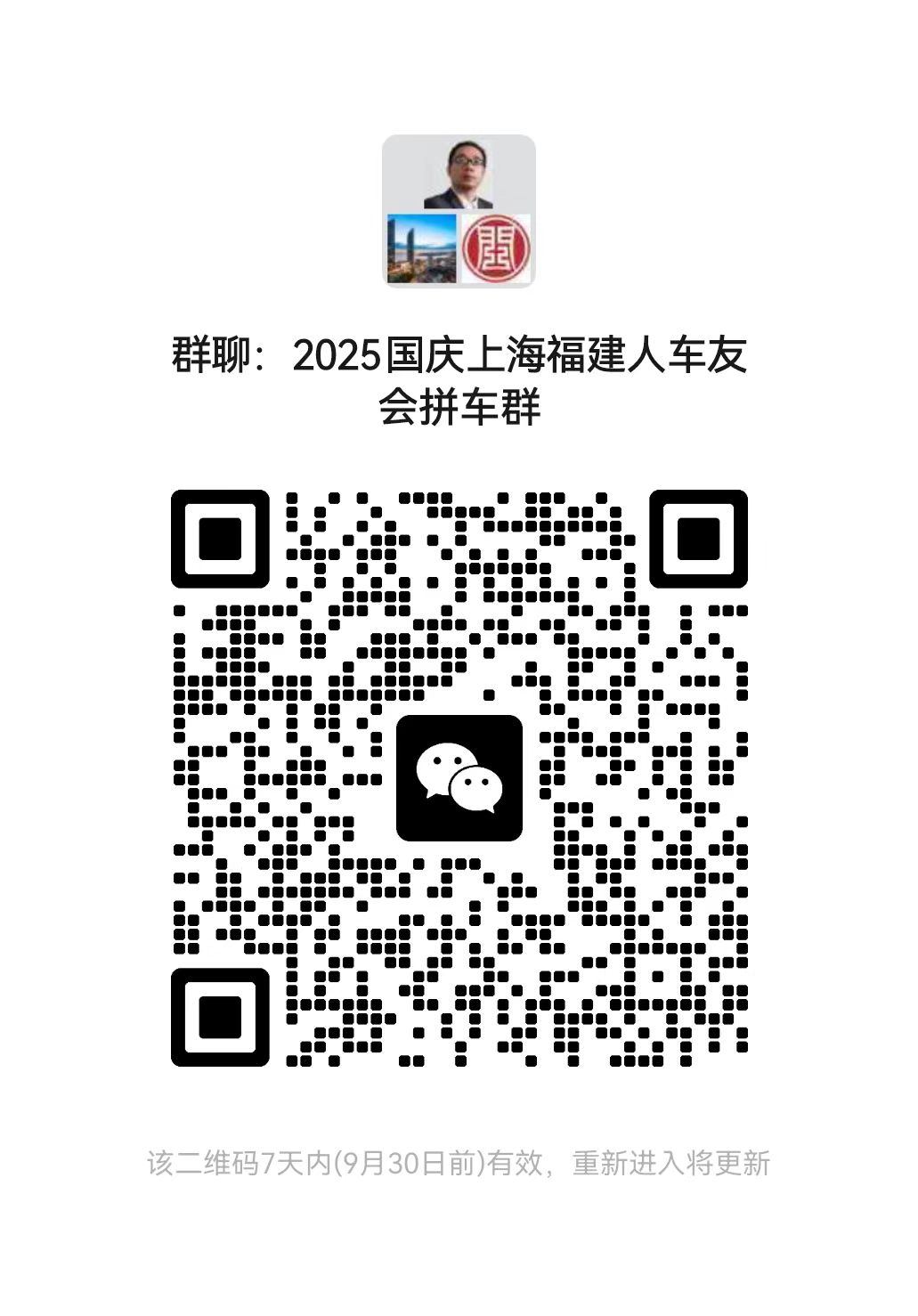 欢迎加入上海福建人车友会群:加群主微信“shfjr1”,发暗号:福建籍贯县+上海居住地+车品牌+姓名+手机号,邀请入群。